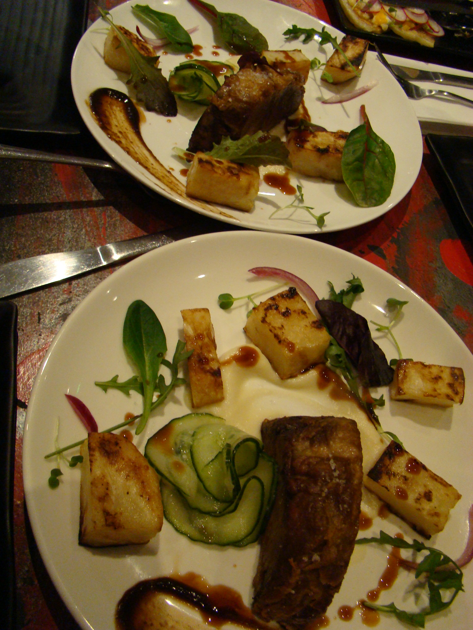 Le déjeuner du midi se base sur les plats « bols » et le soir on a des assiettes aux dressages plus élaborés et aux recettes plus pointues.