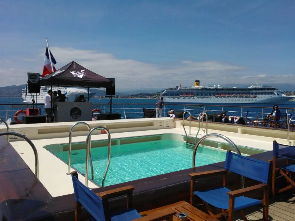 Cette année Schweppes a fait fort en s’installant sur le plus grand voilier du monde, un peu en marge du port cannois.