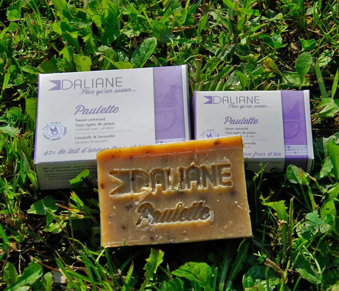 - Les savons Daliane, au lait d’ânesse, faits à la main en Haute-Savoie, avec passion et dans l’authenticité, par Sylvie Dalibard. Il en existe toute une gamme aux doux noms des ânesses de Sylvie (Colette, Victoire, Augustine, Gabrielle,…), à adapter suivant la nature de votre peau et les bienfaits recherchés.