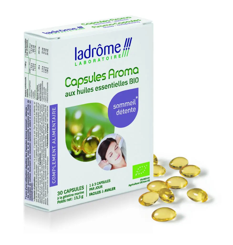 Autre produit du même type chez Ladrôme, le Sirop à base de plantes Calme & Sommeil aux 8 plantes actives, ou encore les nouvelles capsules Aroma, spécial Sommeil-Détente (12 € la boite de 30 capsules).