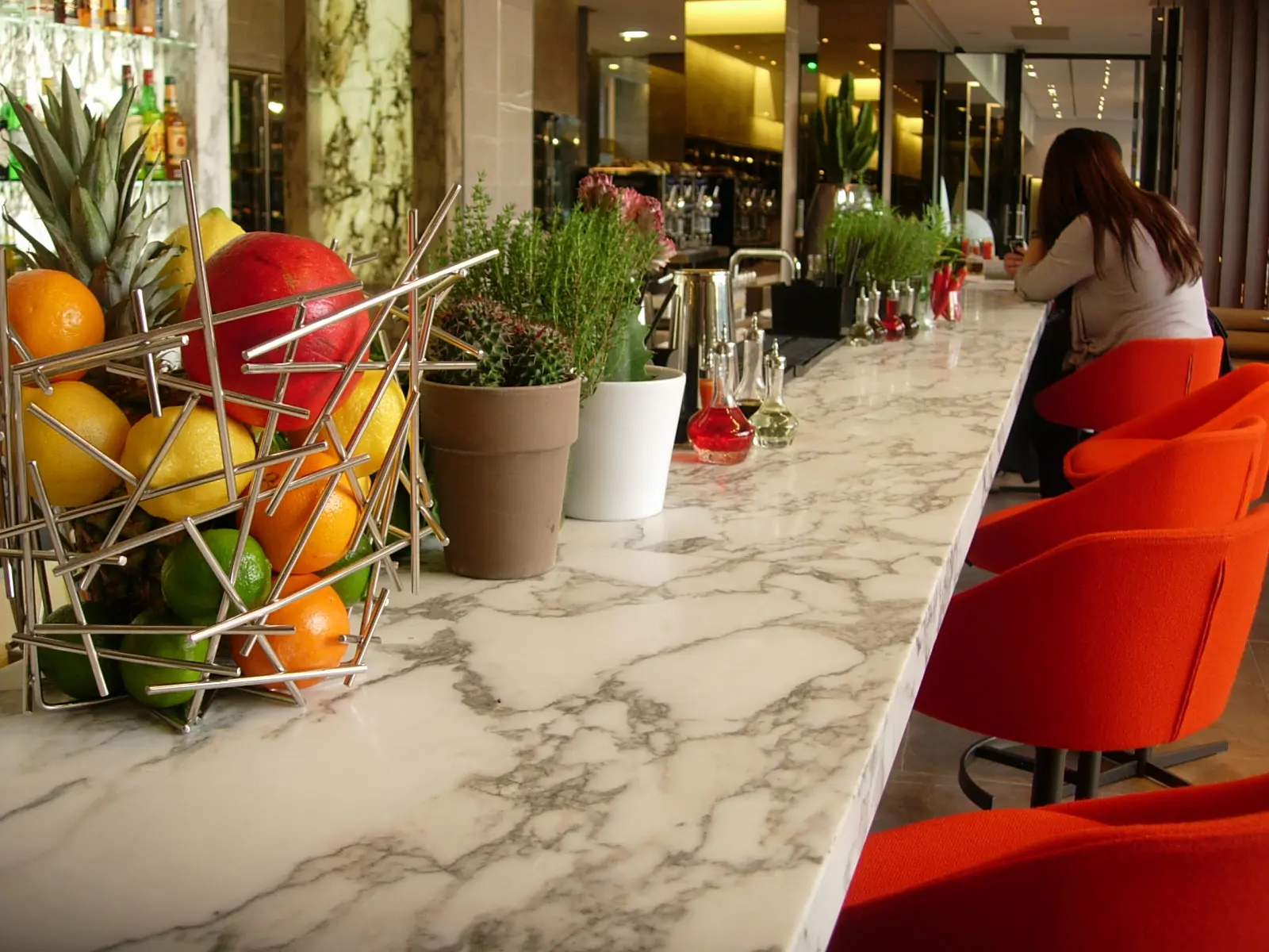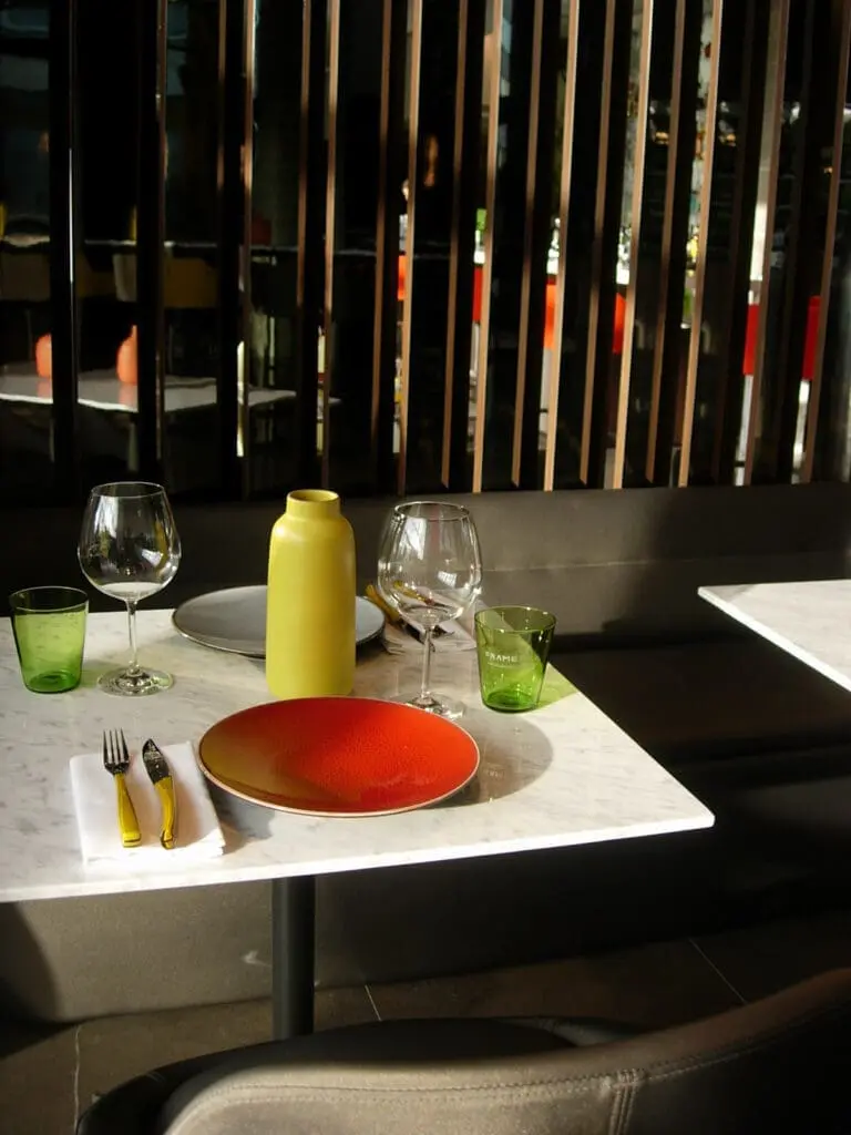 C’est rive gauche, dans le 15ème arrondissement de Paris, que je suis allée découvrir la brasserie FR\AME, attenante à l’hôtel Pullman et que, par la même occasion, j’ai fait un petit voyage culinaire en Californie. J’étais pourtant en plein cœur de la capitale et à deux pas de la Tour Eiffel… Ce petit miracle tient à la fois grâce au designer, architecte d’intérieur et scénographe Christophe Pillet qui a imaginé un lieu de vie extrêmement agréable, moderne et élégant, dans un décor minéral avec un dégradé de gris chauds, relevé de touches colorées, mais aussi grâce à la cuisine californienne twistée aux saveurs françaises servie par le jeune chef, Andrew Wigger.