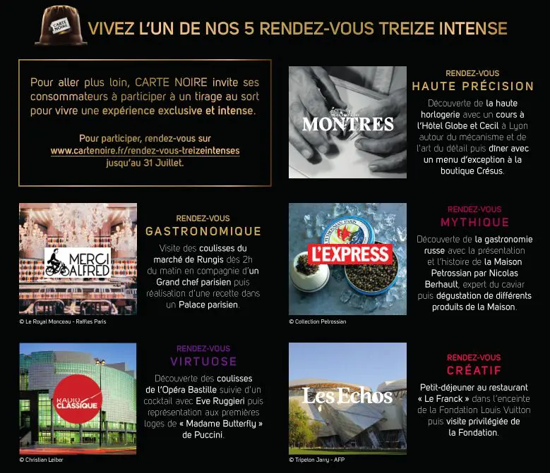 Le bon plan : Carte Noire propose à tous jusqu’au 31 juillet de participer à un tirage au sort pour vivre une expérience exclusive et intense via un jeu concours en ligne.