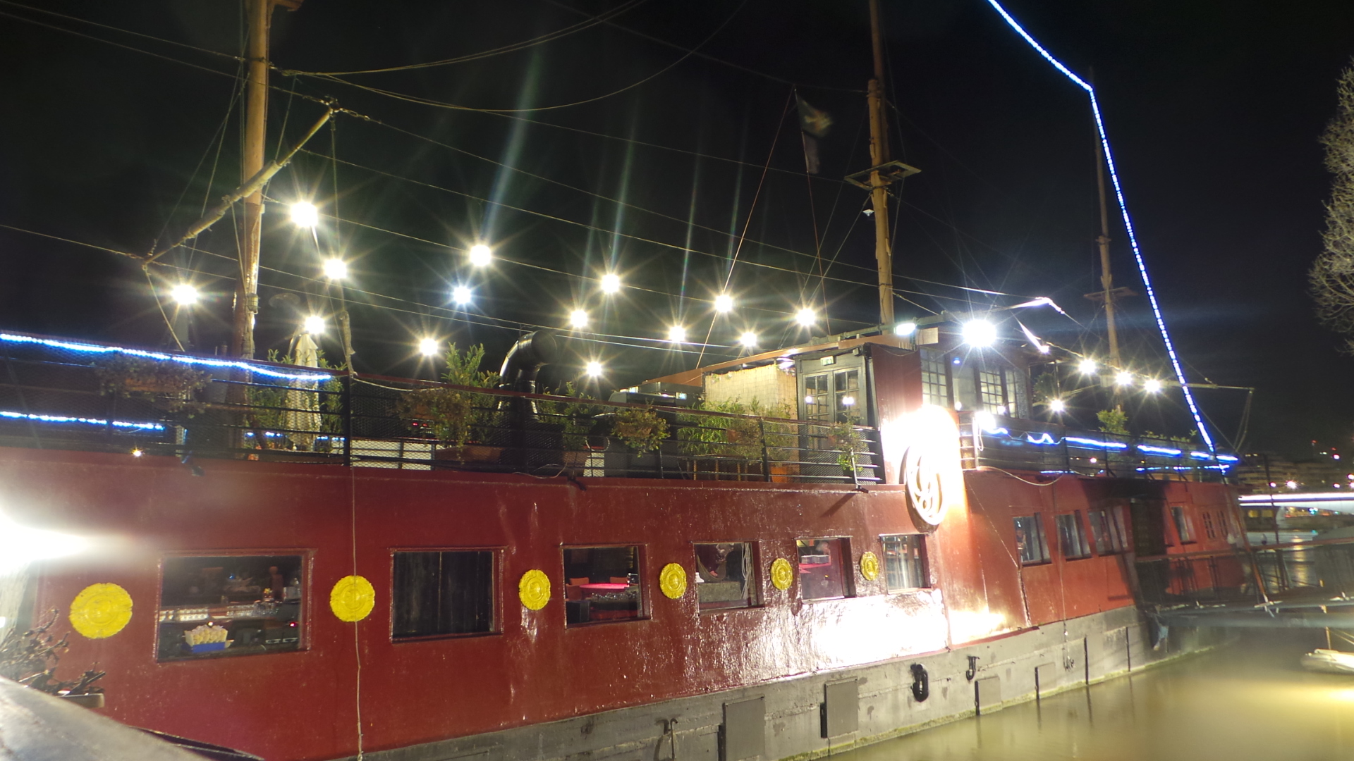 Amarré au bord de la Seine, en bordure du bois de Boulogne, près du pont de Suresnes et en face de l’Hippodrome de Longchamp, l’accès au lieu sans voiture n’est pas particulièrement aisé, mais pas impossible puisque je l’ai fait ! Il vous faudra prendre un bus (le 244 ou le 241) et marcher un peu dans la boue (les chaussures neuves de mon accompagnatrice s’en souviennent encore…), mais c’est faisable, même en soirée.