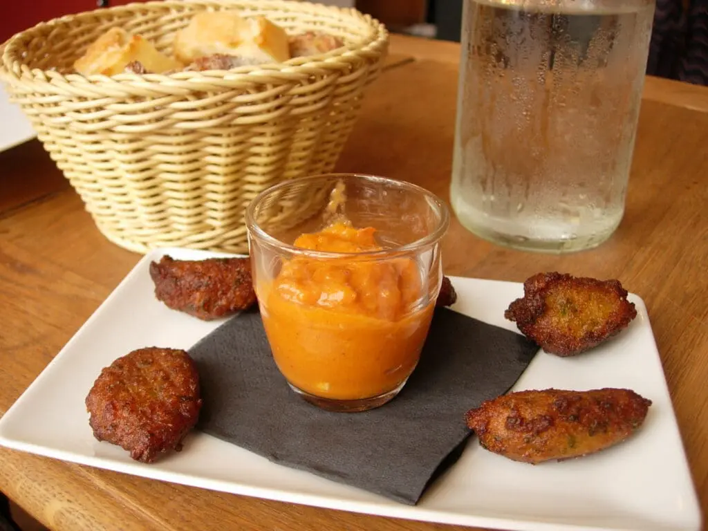 Chez Bang ! est un restaurant spécialisé dans les viandes du monde et les vins naturels (alliance fort sympathique d’ailleurs). Ce restaurant, situé idéalement sur le canal Saint Martin, est tenu par François Di Giugno et Imina Nial. Il possède pour les beaux jours, une belle terrasse agrémentée de tables nappées de carreaux bancs et rouges et des ampoules colorées façon guinguette pour les soirs d’été.