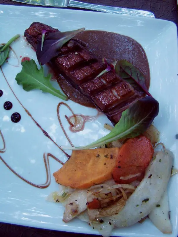 • Magret de canard de chez Milleret juste perlé, réduction de jus de veau au parfum de madeleine.