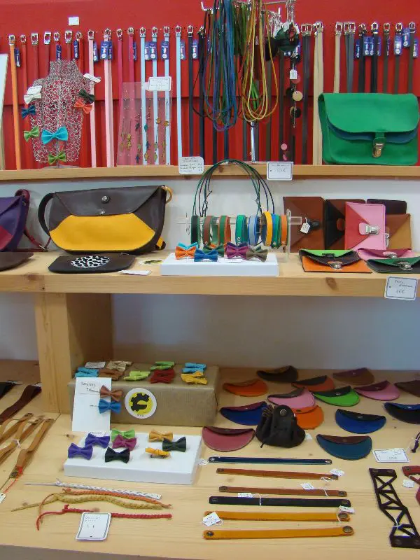 Vous y trouverez notamment les très belles créations de maroquinerie de Nathalie Marty, atelier Ronde de Cuir, qui fabrique ses produits et les vend directement à la Cité des Tanneurs. Donc si vous voulez acheter un cadeau local, vous savez vers quoi vous tourner.