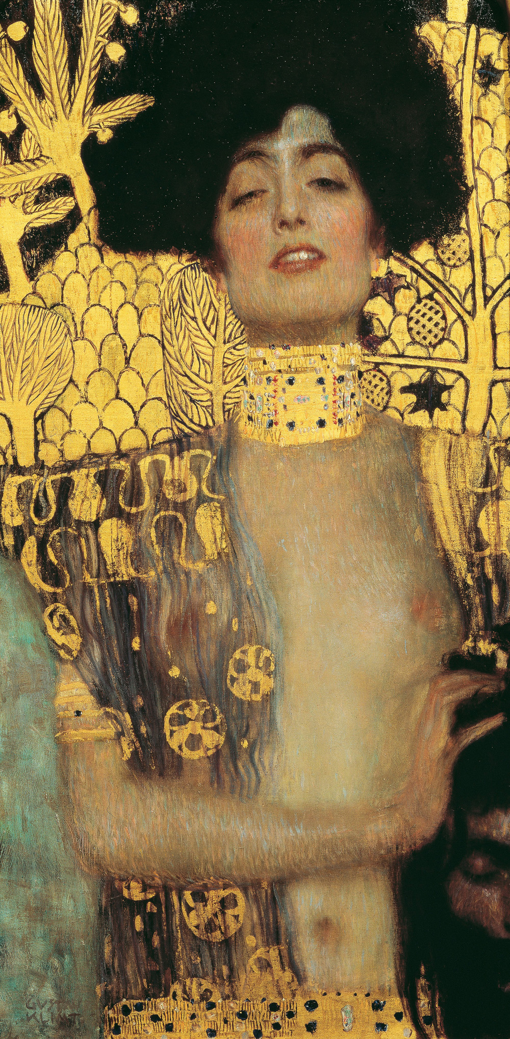 Parmi ses chefs-d’œuvre, Judith, dont les applications de feuilles d’or et d’argent reproduisent les effets de la joaillerie.