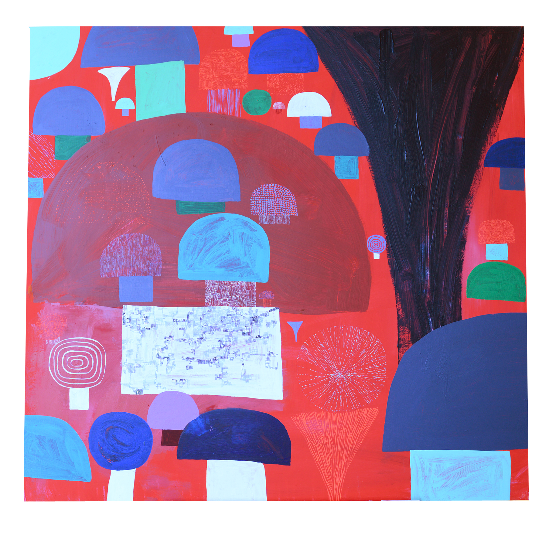 Les œuvres ont pour point commun une palette de couleurs gaies qui, je trouve, fait beaucoup de bien en plein hiver. Elles sont présentées dans l’espace Café de l’Institut. On peut donc les admirer tout en dégustant son café. Il paraît que leurs gâteaux sont délicieux, mais le soir de ma venue, il y avait eu une razzia dessus…