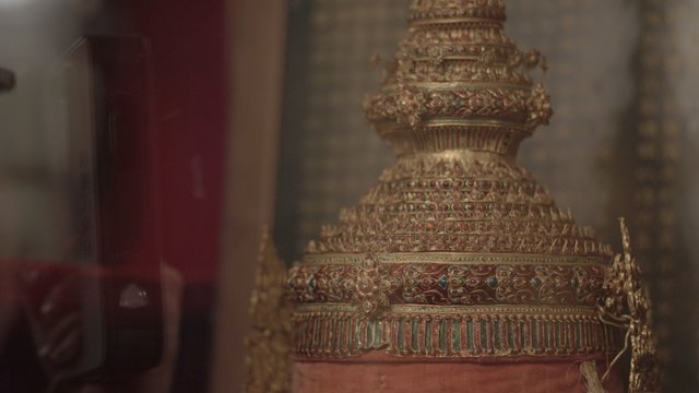 Considéré comme sacré, l’original n’était pas visible par ses sujets et ne l’est toujours pas aujourd’hui par le grand public. De même, l’existence de deux répliques à l’étranger a longtemps été tenue secrète en Thaïlande. Pour voir la couronne, Arin Rungjang s’est rendu au musée d’art chinois de Fontainebleau, siège de la réplique offerte à l’empereur Napoléon III en 1861.