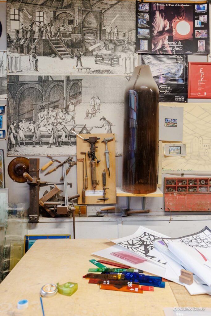 Il existe un lien particulier entre le Château de la Rivière (dont je vous parle dans un autre article) et cet atelier de renommée mondiale situé non loin de Chartres : c’est ici qu’a été réalisé le vitrail de la piscine du château. Les Ateliers Loire sont une référence dans l’art du vitrail. Il est possible de découvrir leur savoir-faire exceptionnel lors de visites organisées pour le public (généralement les vendredis à 14h30). C’est l’occasion d’avoir des explications détaillées sur les différentes techniques de création et de restauration de vitraux, et de découvrir les commandes actuelles sur lesquelles travaillent les artisans. Une visite vraiment passionnante que je vous recommande chaudement.